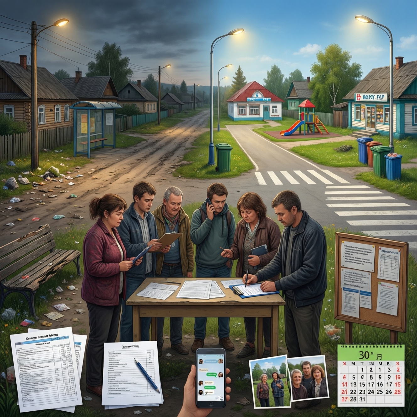 Не нужно пытаться «перевернуть систему» одним постом в чате или громким скандалом на сходе. Гораздо продуктивнее выбрать одну понятную боль и довести её до результата: например, светильники на улице, остановка, детская площадка, расчистка дороги к ФАПу, урны у магазина, безопасный переход.
